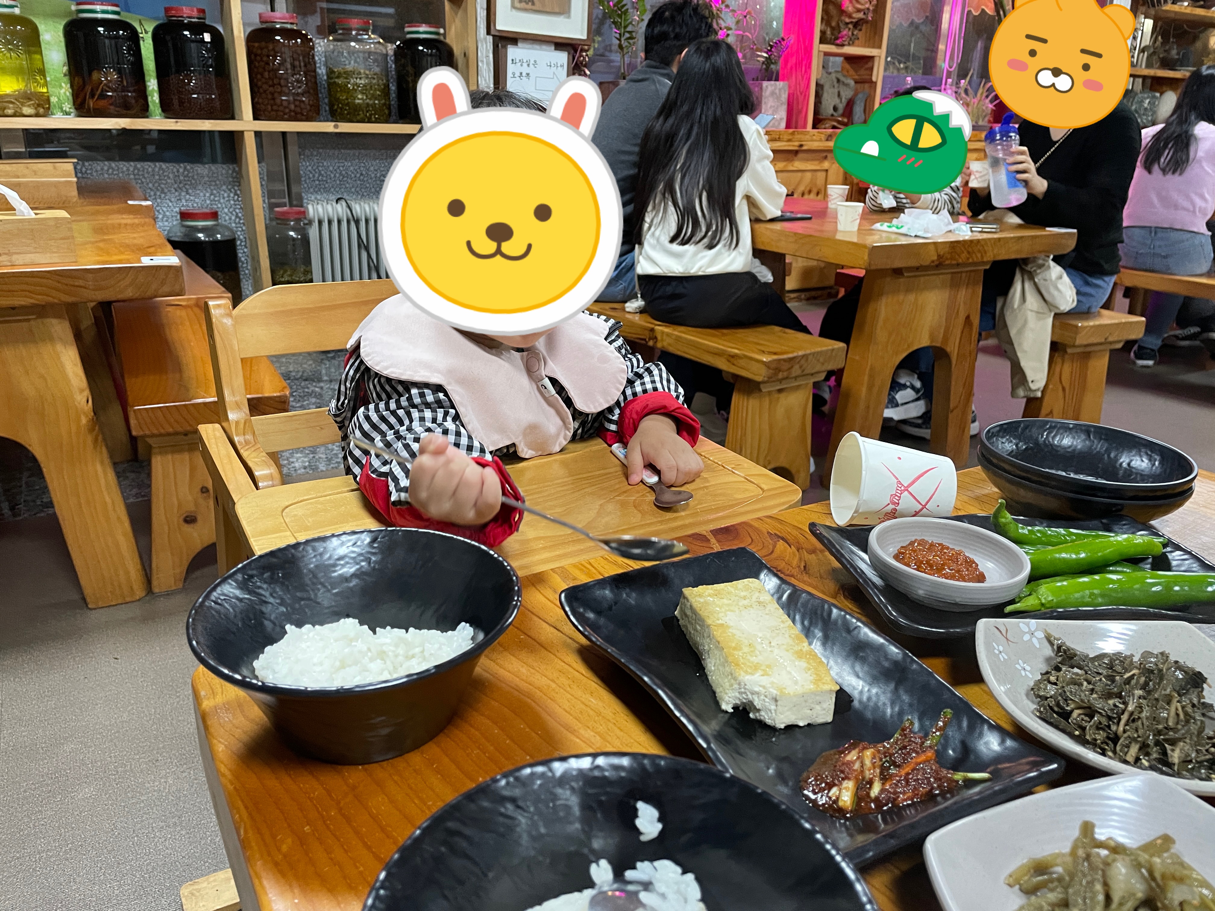 논두렁밭두렁(청국장): 곤지암리조트에서 10분 거리에 위치함. 태화산명가(닭갈비)를 가려다 대기가 너무 길어 들어감. 햅쌀로 지은 밥 맛이 좋다. 정성 어린 반찬들이 맛있는데, 소화가 잘돼서 그런지 나올 때 약간 속이 허할 수 있음.
