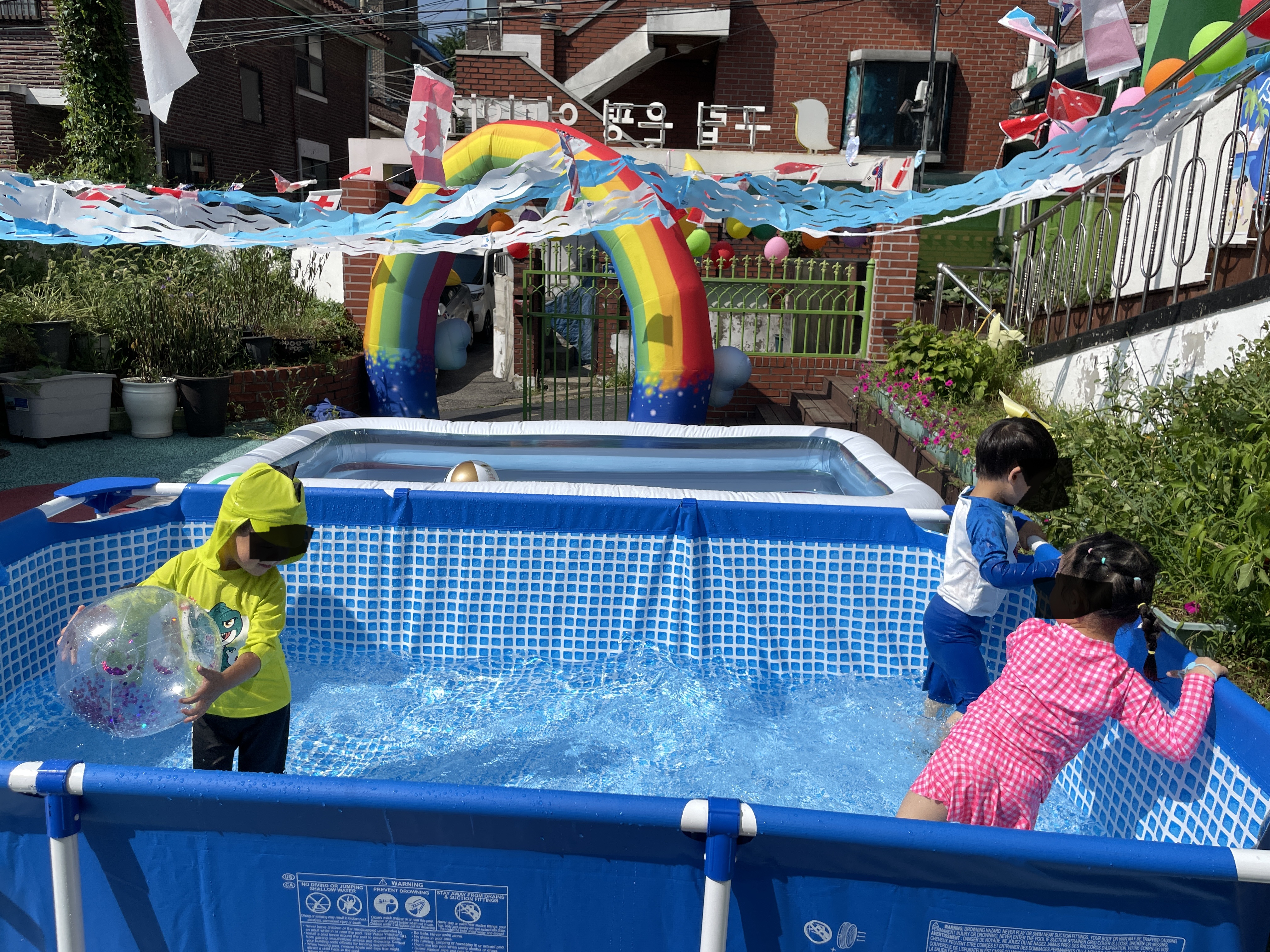 등원 시 워터파크로 변신한 어린이집을 본 아이는 "우와~ 이게 다 뭐야!“라고 깜짝 놀라며 "선생님이 준비했나보다"라고 하였다.